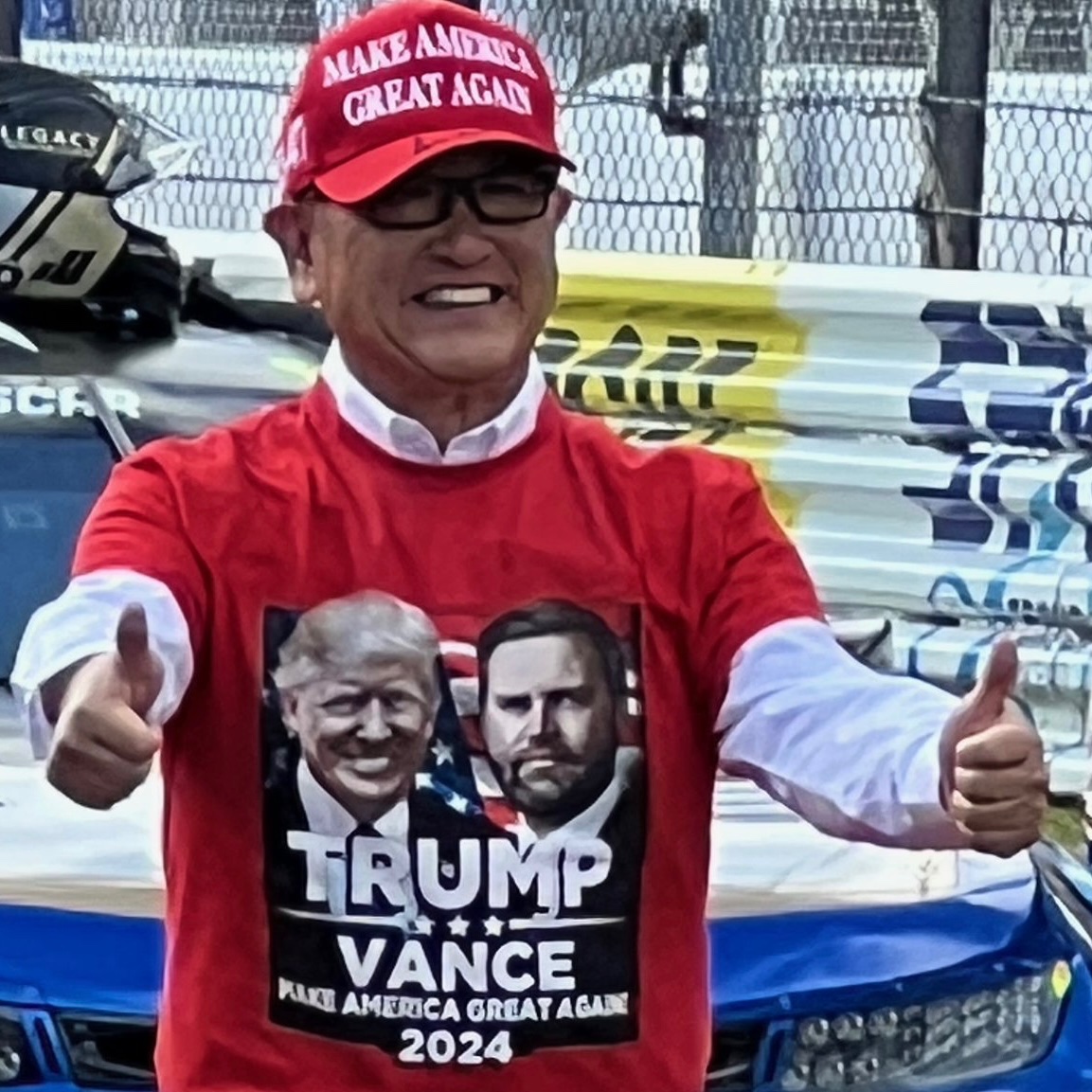 Toyota Chairman Akio Toyoda Wears Trump-Vance T-Shirt, MAGA Hat at NASCAR Event in Japan