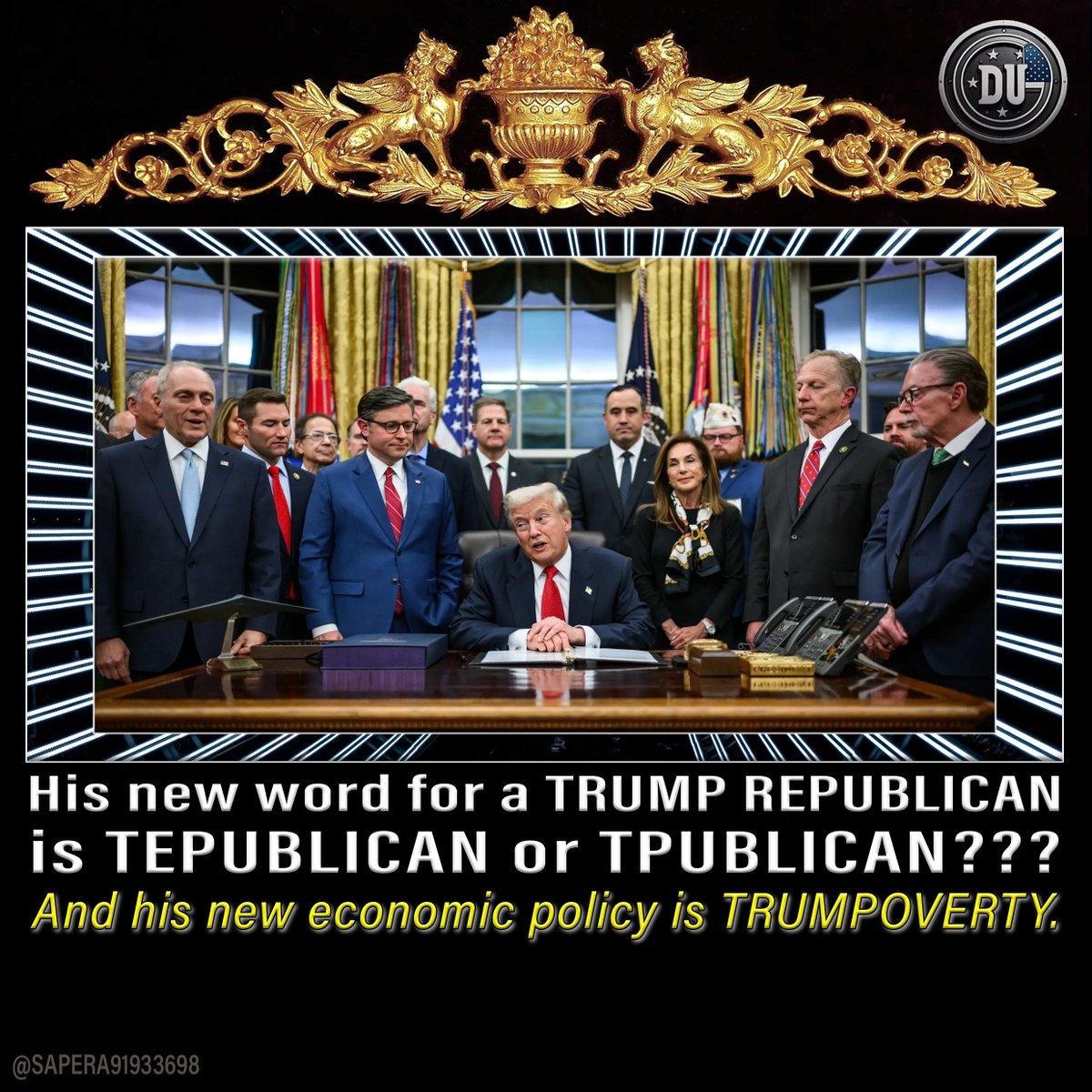 Scorning the low-hanging fruit of Trumpublican, a suggestion so obvious even his son Don Jr. thought of it, the president mused: It is, TEPUBLICAN??? Or, TPUBLICAN???.....