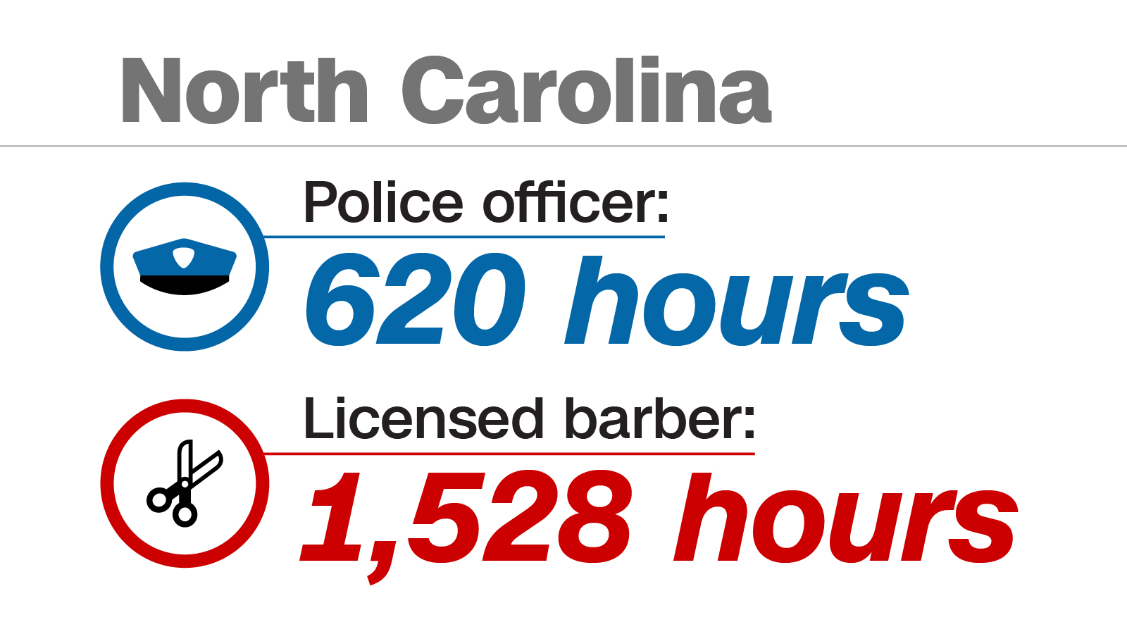Turns out, Jacobs claim is right. And its not just in North Carolina. In California, New Mexico and New York, you can get a badge hundreds of hours sooner than you can use a pair of barber shears.