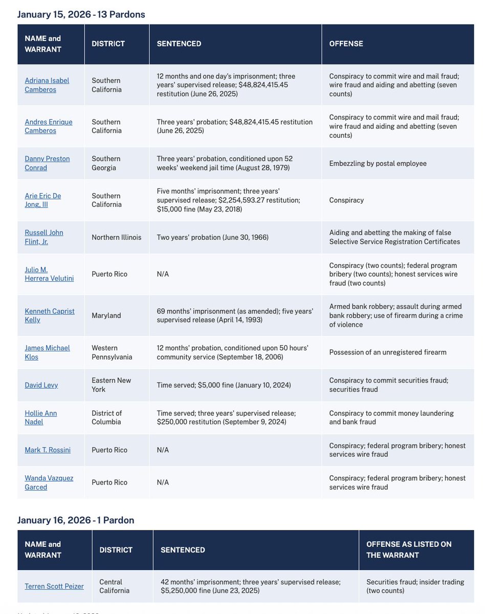 Latest round of Trump pardons primarily centers on people convicted of fraud -- and also a guy who abetted creation of false selective service records in Vietnam era. https://justice.gov/pardon/clemenc