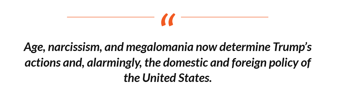 Today on TAP: His narcissism has become psychotically megalomaniacal.