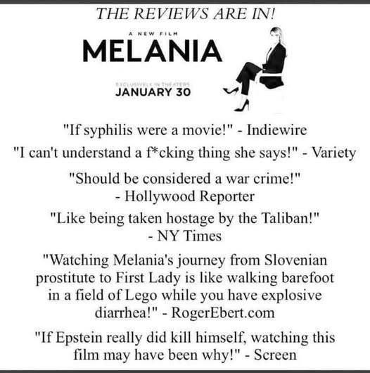 (36,711 posts)So it was with some solace that I perused the Letterboxd page of Melania, which made for some entertaining reading, as users have pre-swarmed the review section to push the score down and let their voices rip.