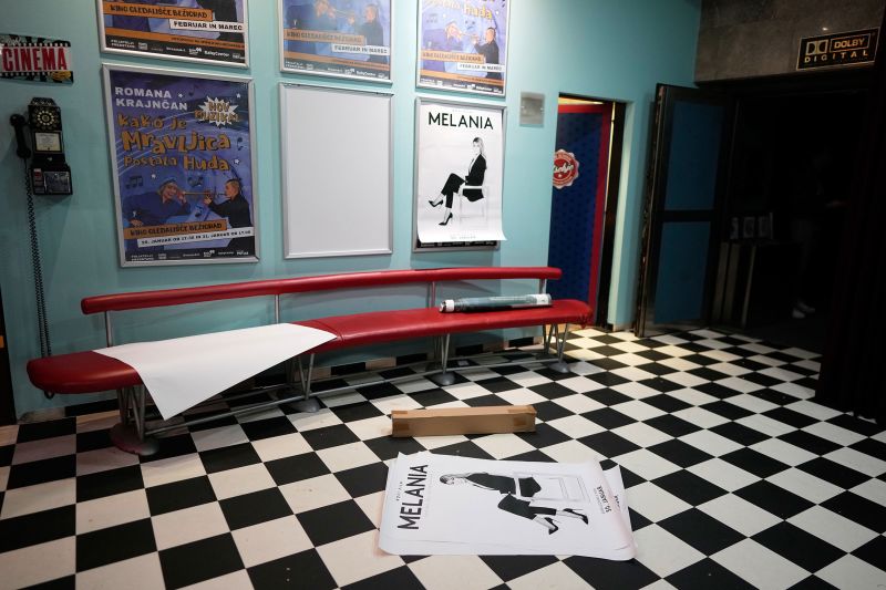 Posters for a screening of "Melania" are ready to be put up in a movie theater in Ljubljana, Slovenia, on Friday.