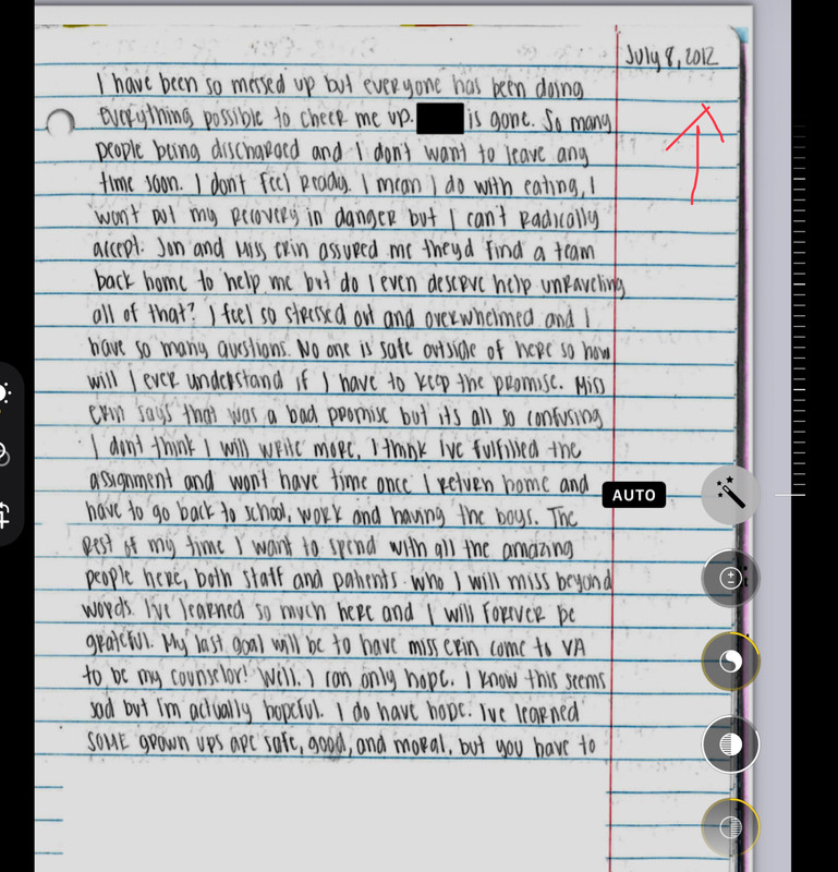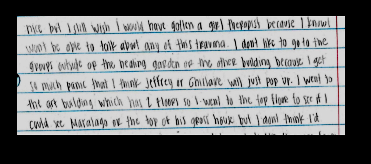 Oh, here are pages from her diary when, apparently, she is in a residential treatment facility not far from