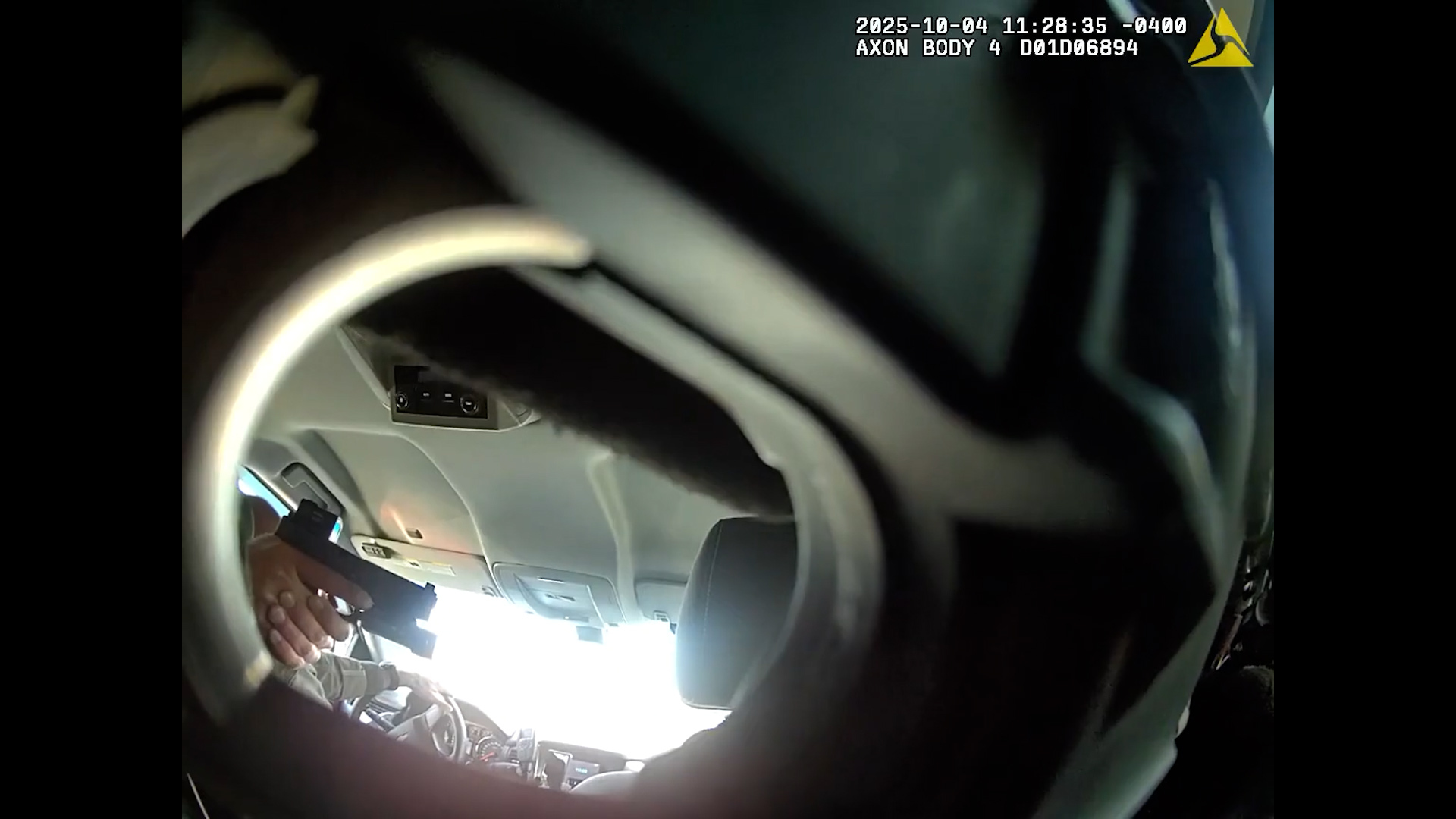 As the footage continues, another agent climbs out of the vehicle, points his weapon and yells "don't you f---ing move" as he appears to secure the area.