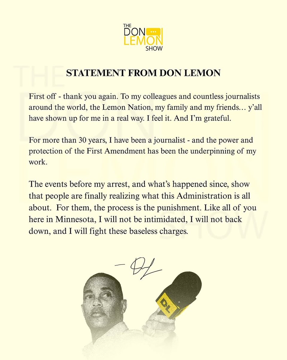 (177,153 posts)2. Don Lemon pleads not guilty in First Amendment case in Minnesota