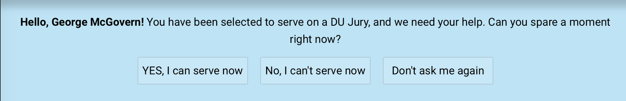 Related: Editorials & Other Articles, Issue Forums, Alliance Forums, Region ForumsThis blue jury service box just popped up on my screen. I was happy to oblige.