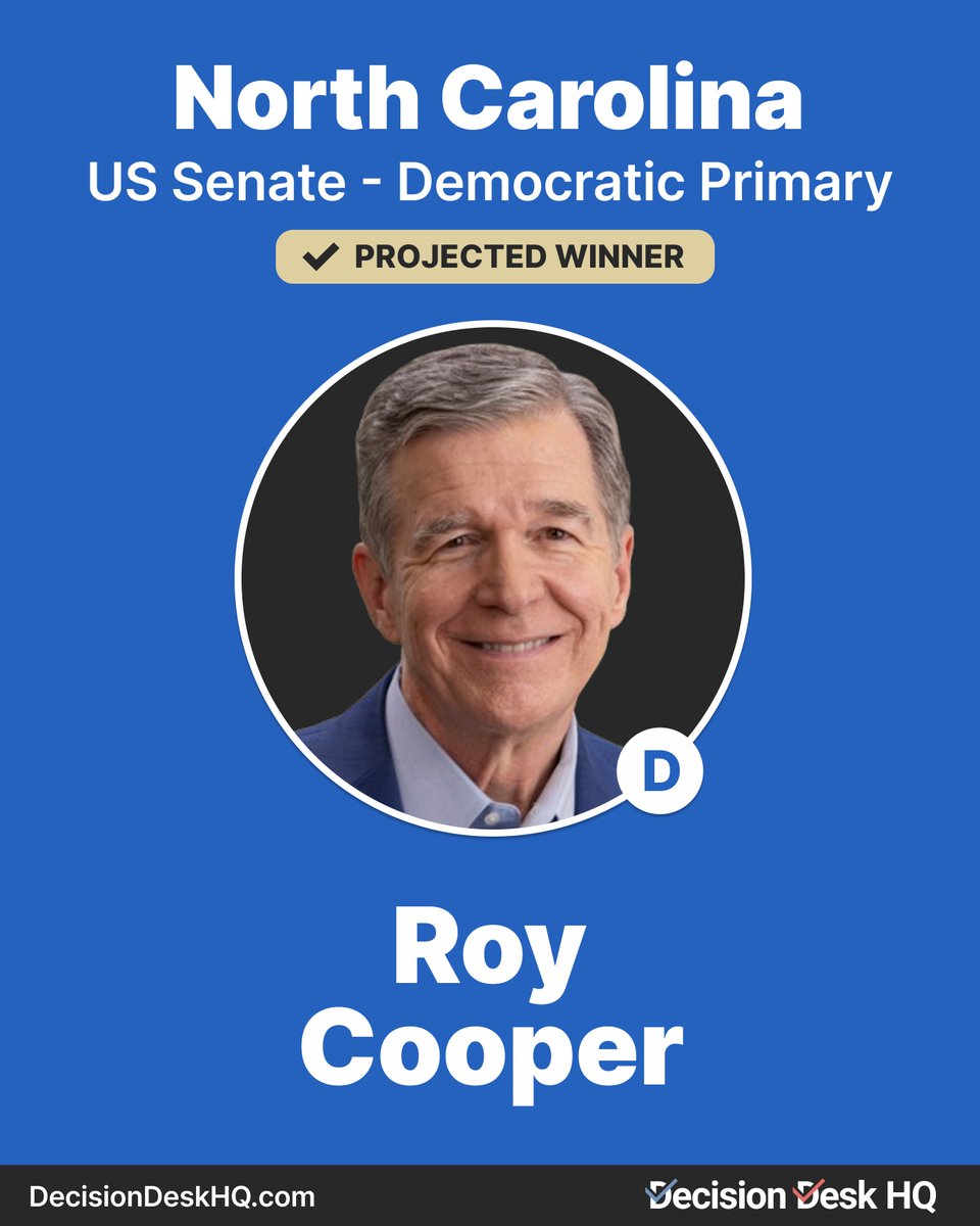 Decision Desk HQ projects Roy Cooper to win the Democratic Primary in the North Carolina US Senate race. (Original Post)