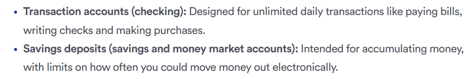 The six-withdrawal cap applied specifically to convenient transactions things like online transfers, bill pay, automatic payments and debit card purchases. In-person withdrawals and ATM transactions were always unlimited. Why the limit existed: The Federal Reserve used reserve requirements as a tool to control monetary policy. By limiting withdrawals on savings accounts, regulators helped banks maintain predictable cash reserves and drew a clear regulatory line between checking (reservable) and savings (non-reservable) deposits.