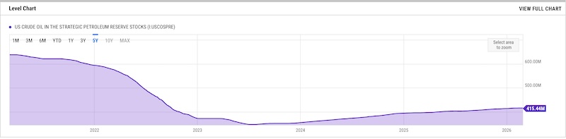 (17,058 posts)You believe that the Strategic Petroleum Reserve is currently at the lowest levels it has ever been since 1986, and I believe it is higher than it was in 2022 and also higher than it was just a year ago.