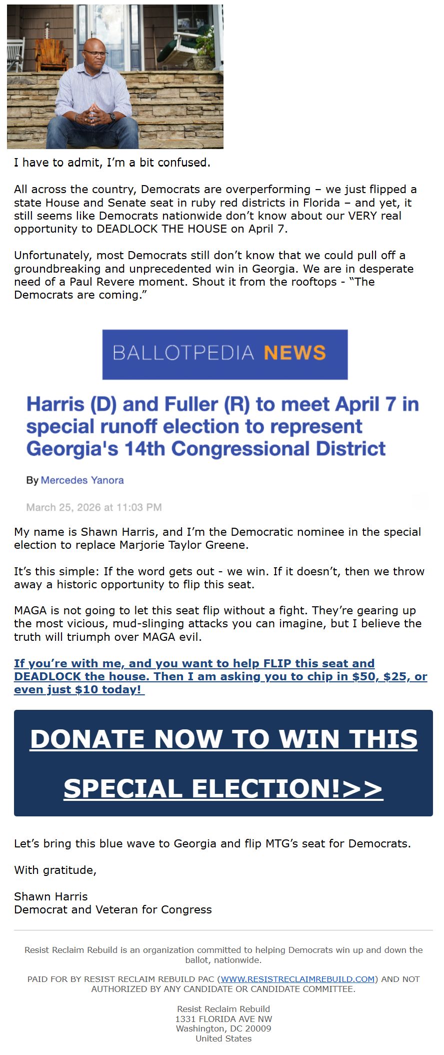 Donate to Shawn here with our DU ActBlue link: https://secure.actblue.com/donate/duforharris26/