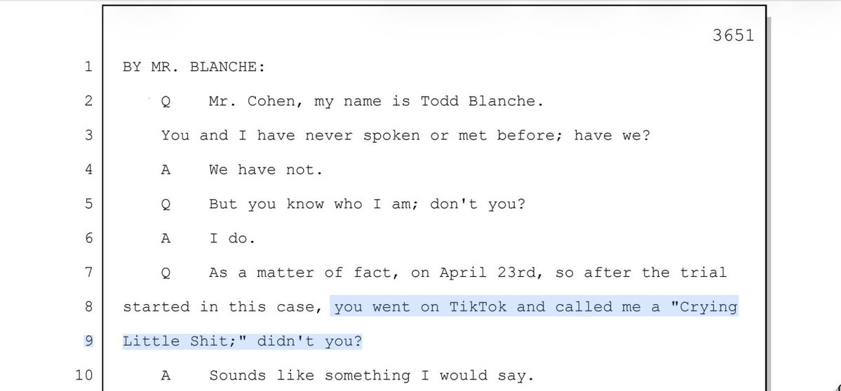 "You went on TikTok and called me a 'crying little shit,' didn't you?"