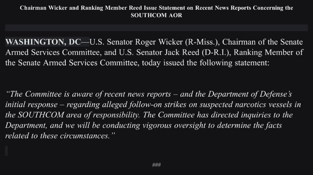 "Our current operations in the Caribbean are lawful under both U.S. and international law, with all actions in compliance with the law of armed conflictand approved by the best military and civilian lawyers, up and down the chain of command," Hegseth said.