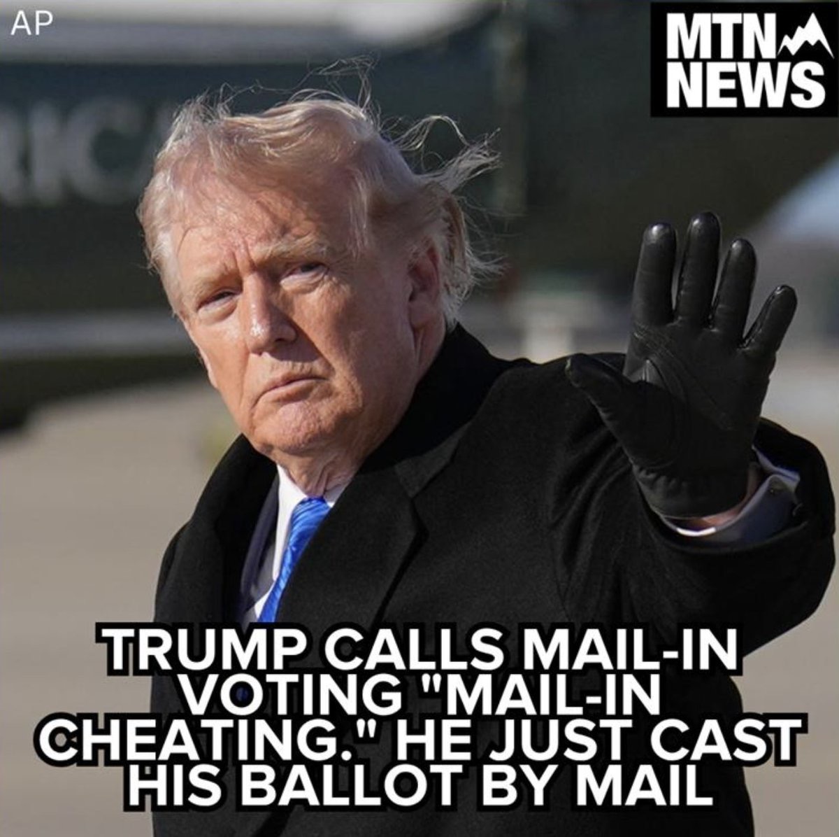 (14,575 posts)Can you believe his reason of "because I couldn't be there, because I had a lot of different things" -- which is the reason ANYONE does mail-in voting (if not for health reasons)!!