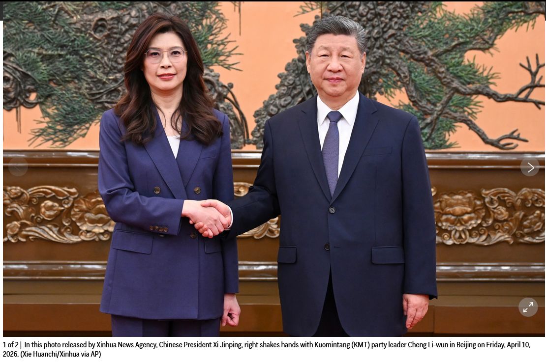 Cheng Li-wun, the head of the Kuomingtang, and Chinas President Xi Jinping held a high-profile meeting Friday during which they called for peace, without offering specifics. China claims the island as part of its territory and hasnt ruled out the use of force to annex it.
