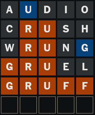 ⬜🟩🟩🟩🟩 🟨🟨⬜⬜⬜ Trite