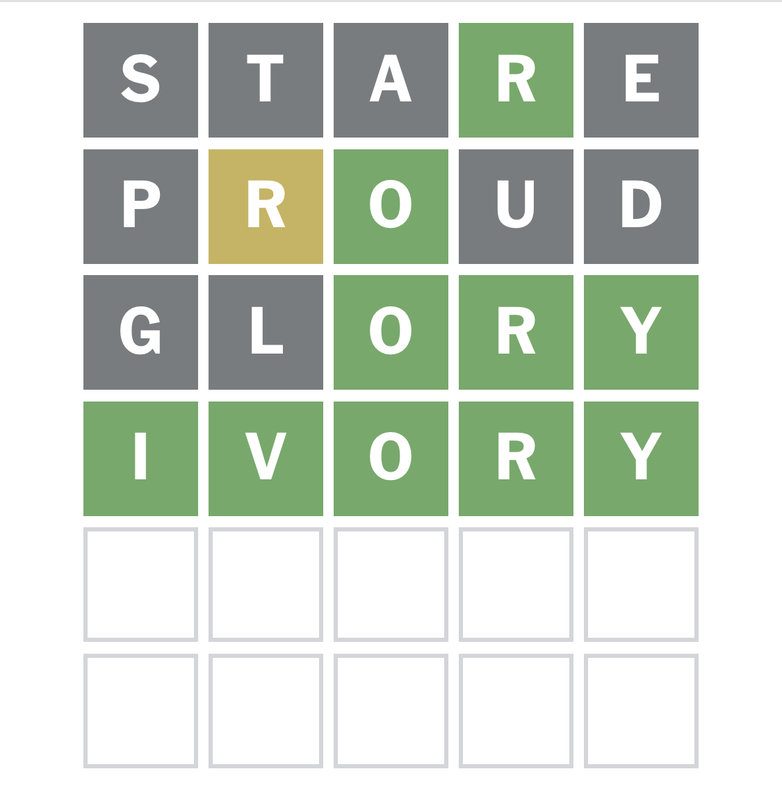 Once again, when I got to that last guess, I was looking at the puzzle for a LONG time.