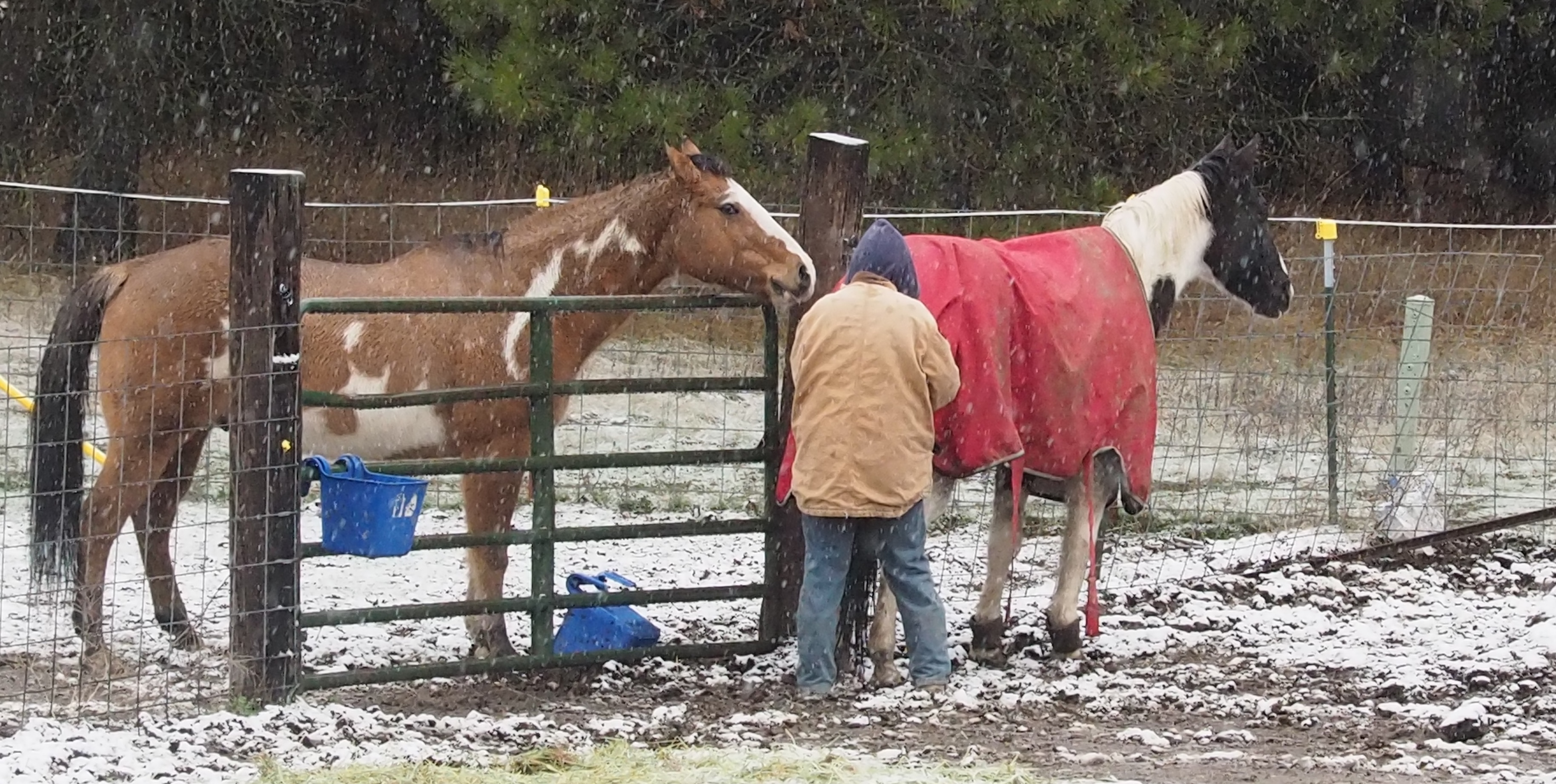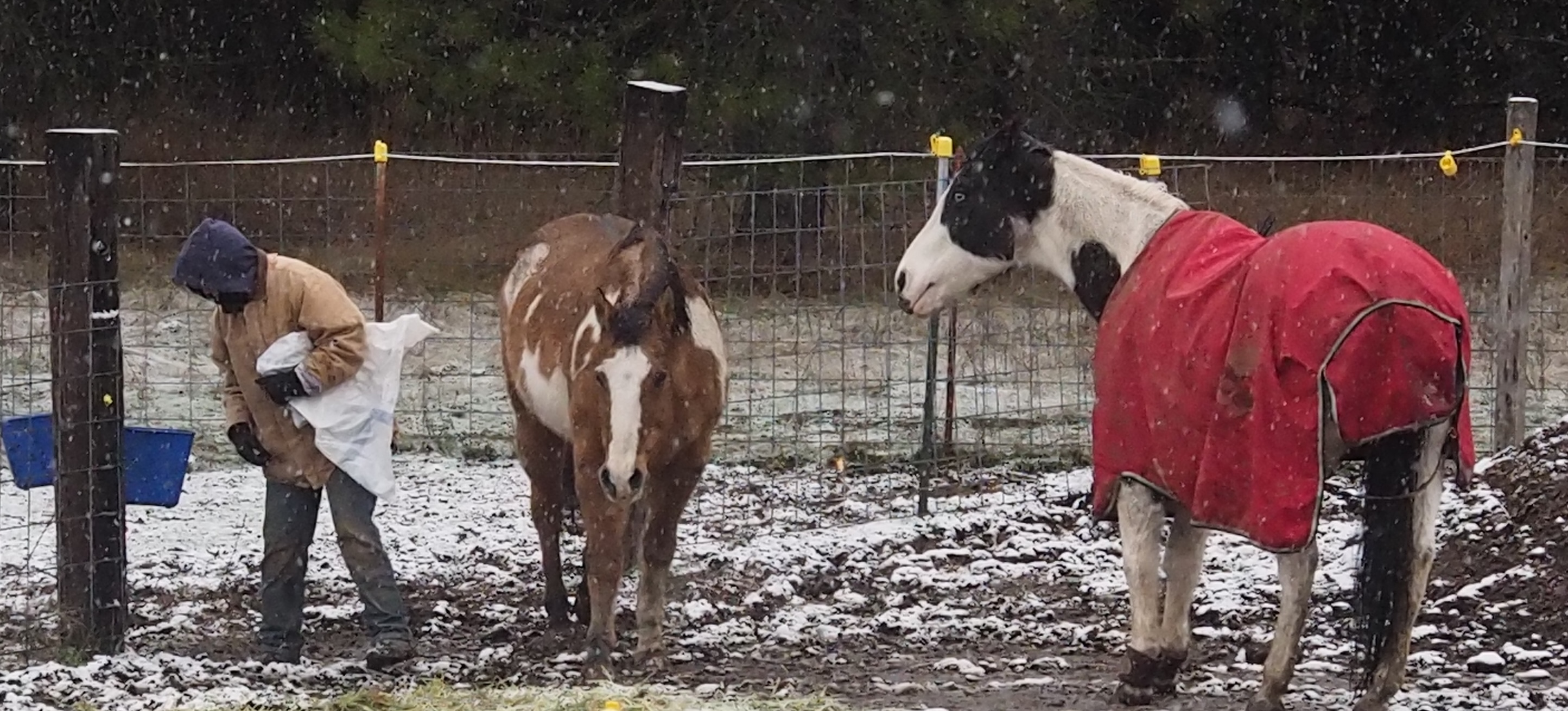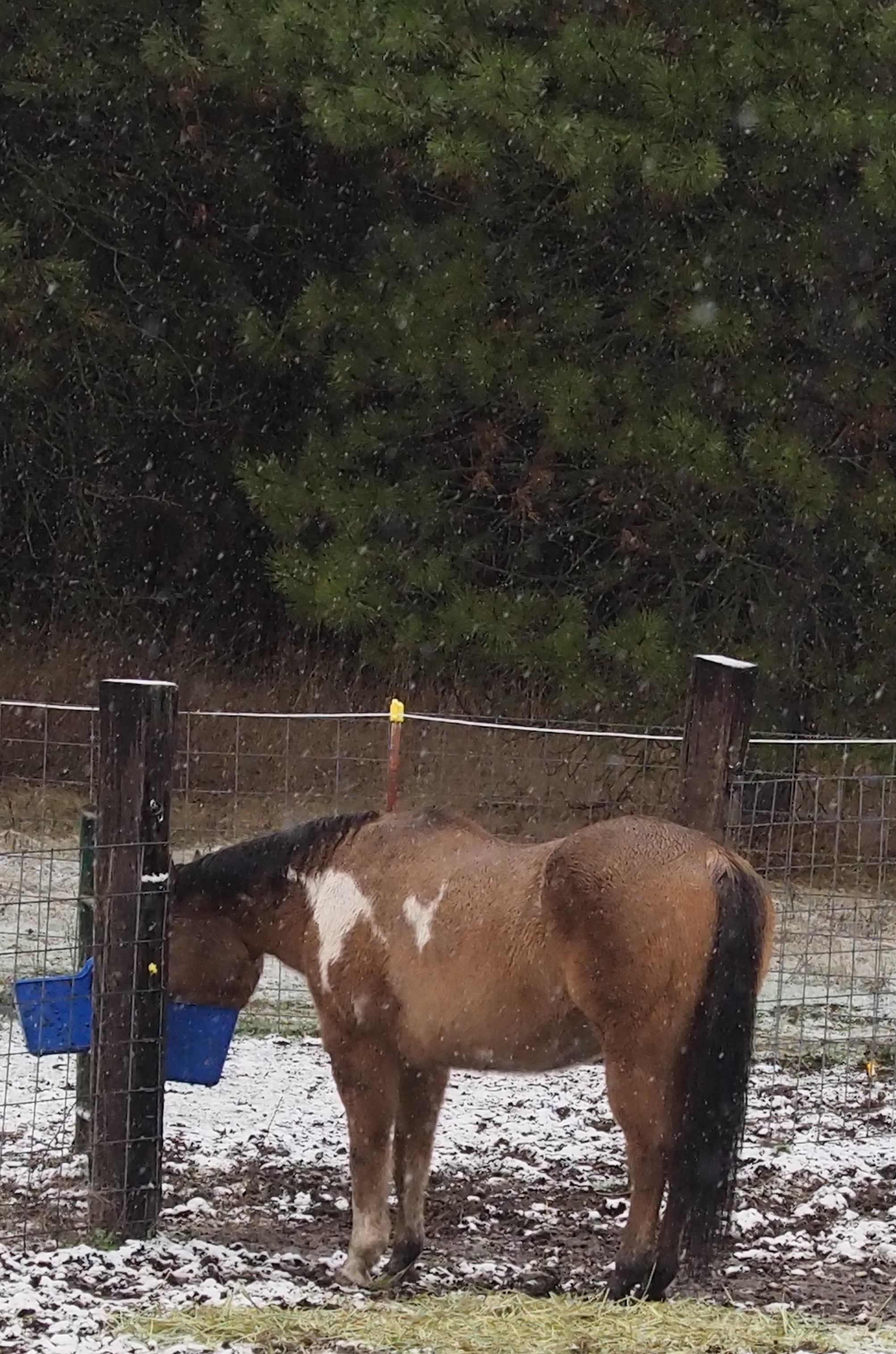 Laurie checked Pete's grain bucket before going on to the next chore.