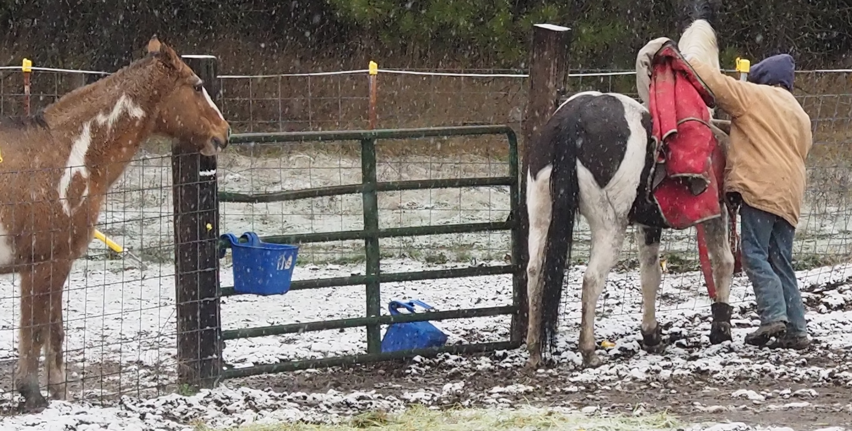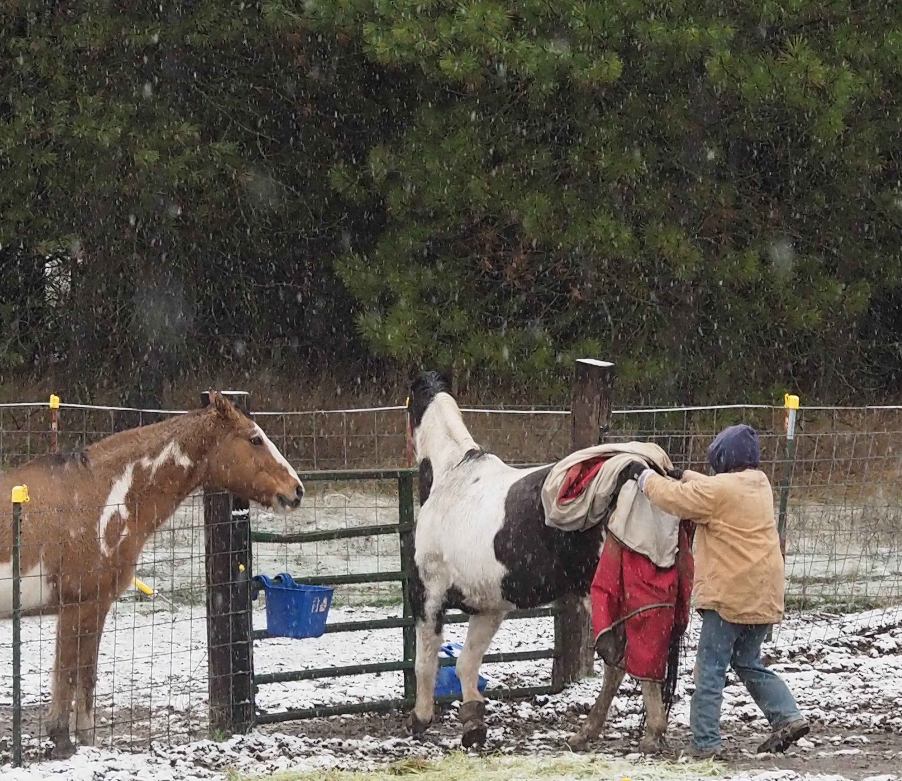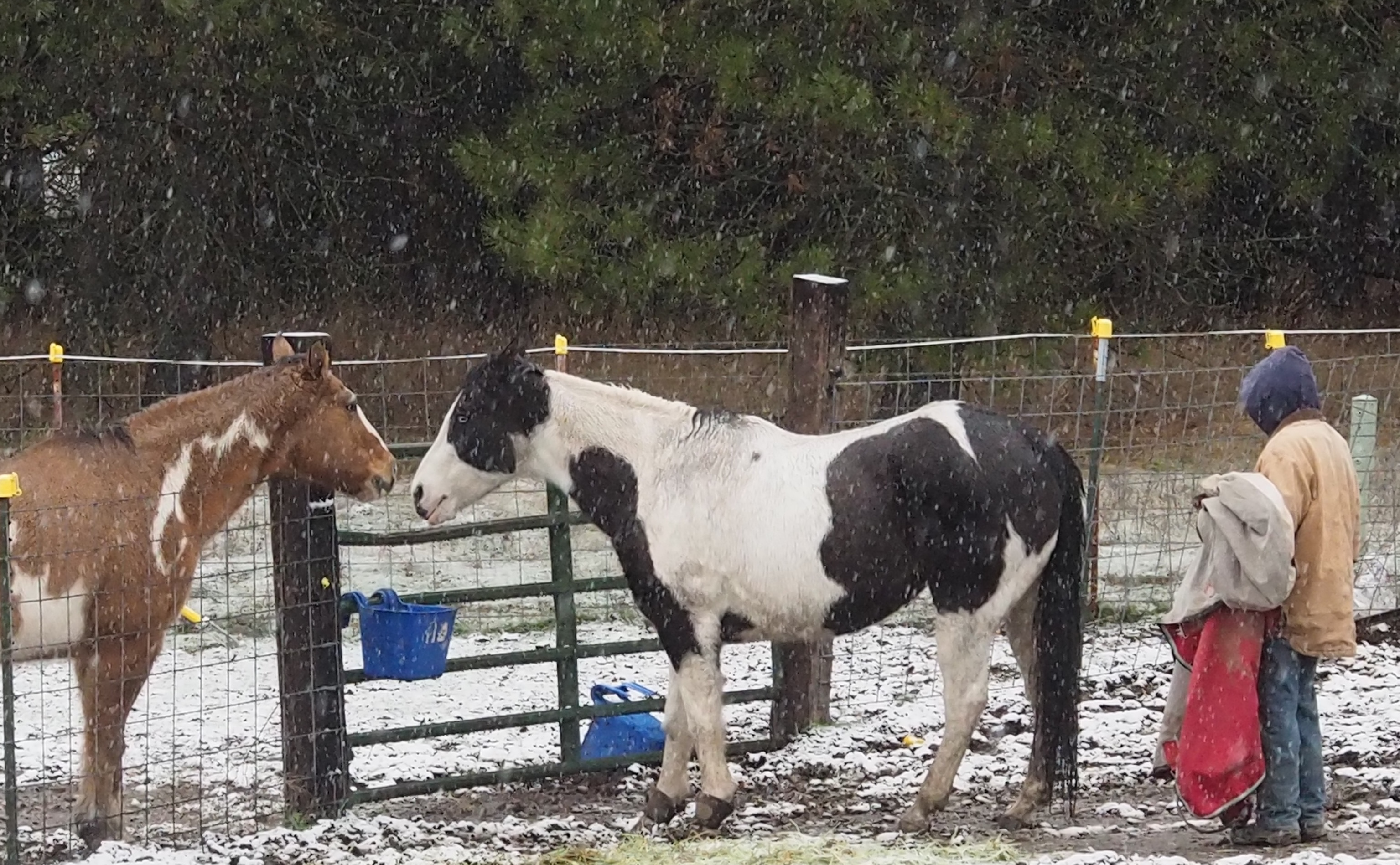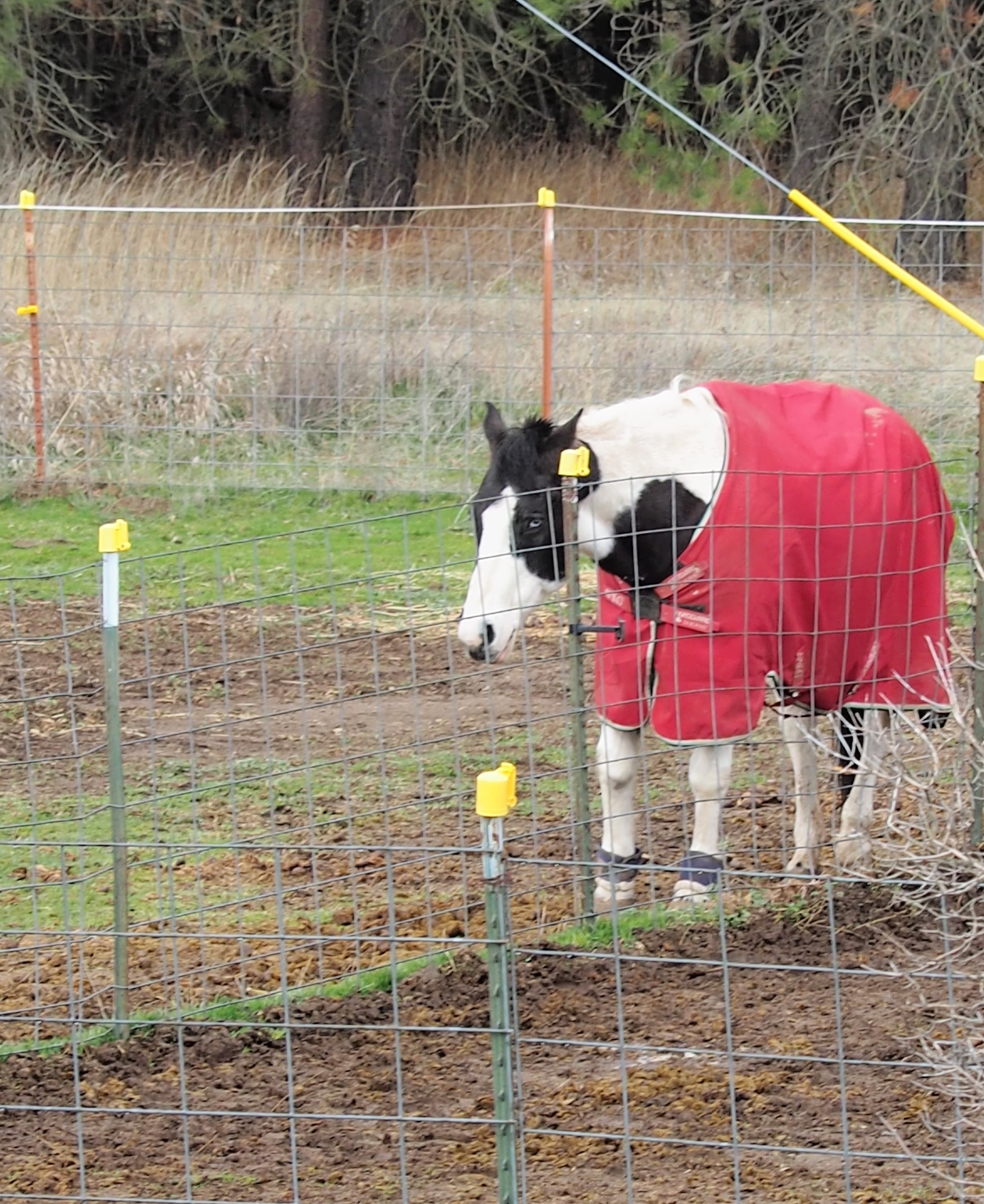 Laurie checked Pete's grain bucket before going on to the next chore.