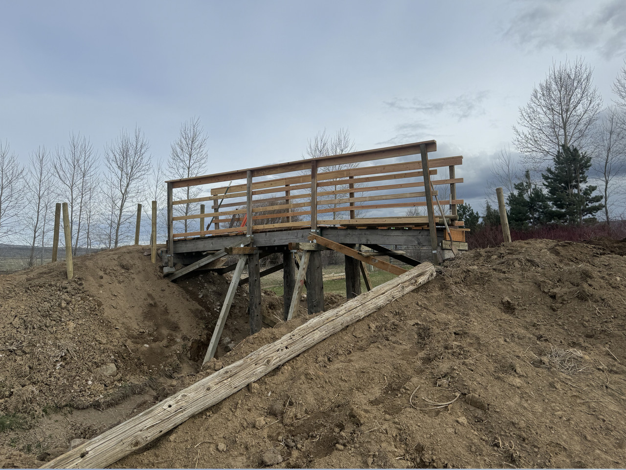 Access paths were built up at each end of the structure.
