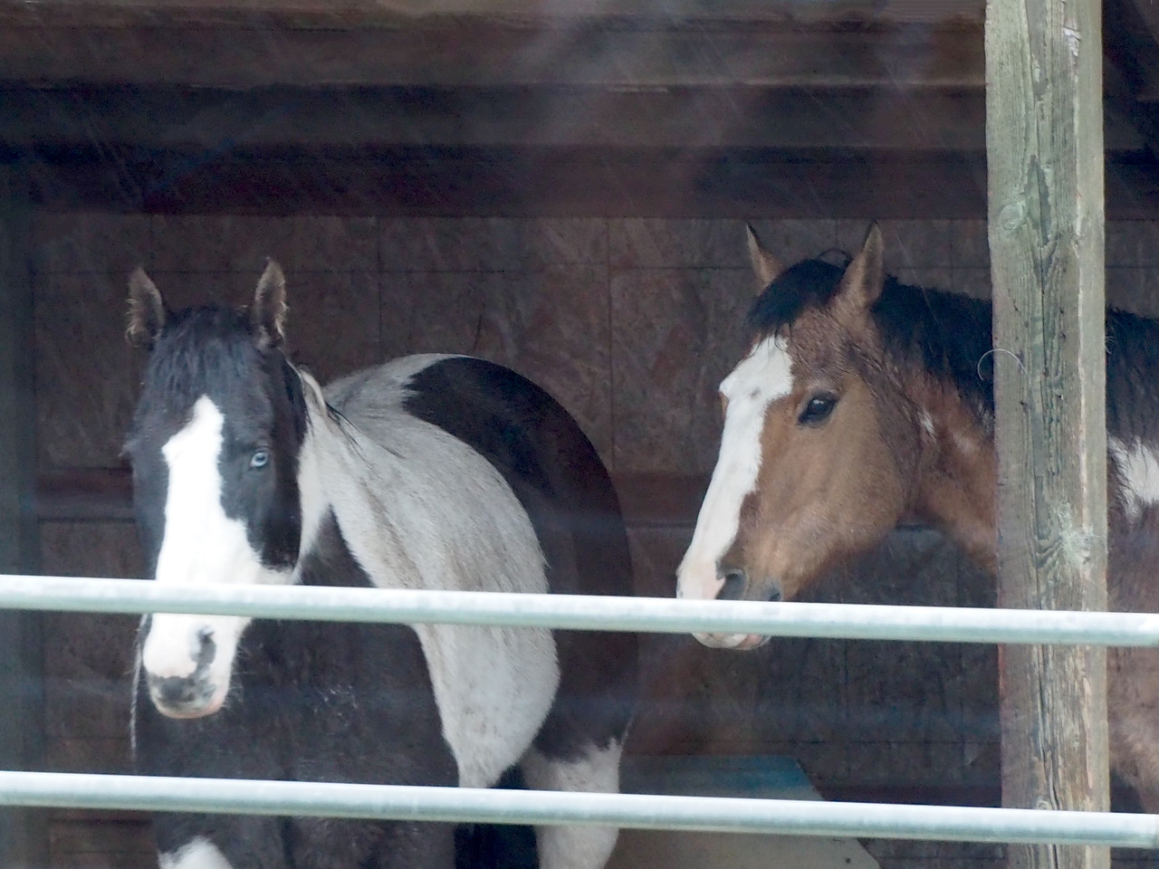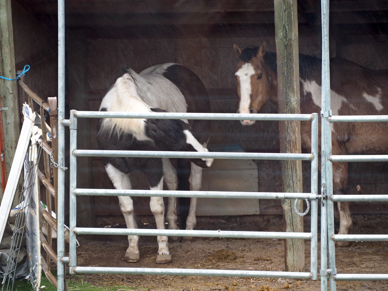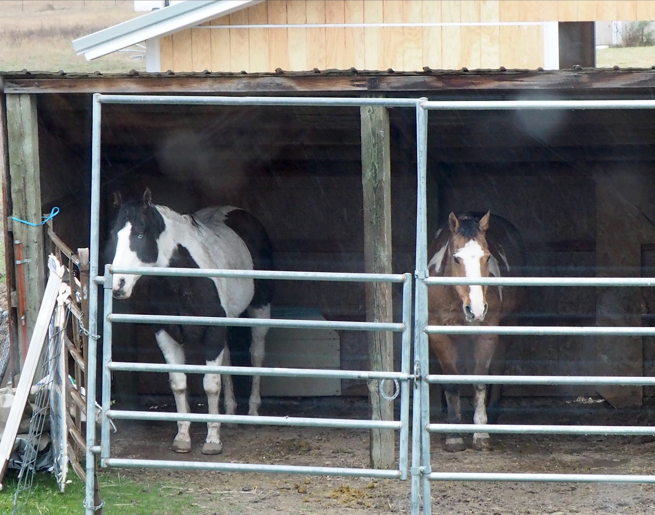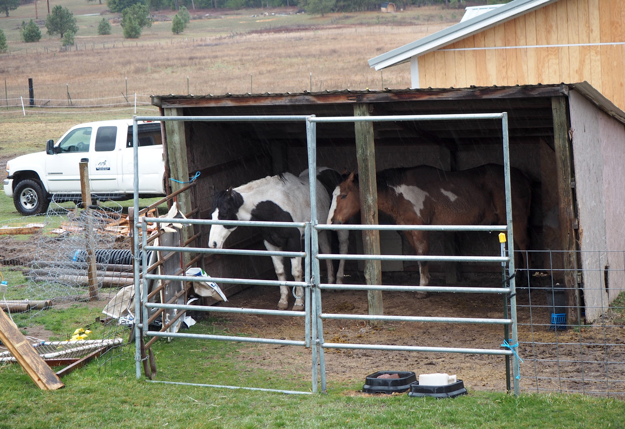 Another day was rainy. Horsies stood inside their still-temporary "barn".