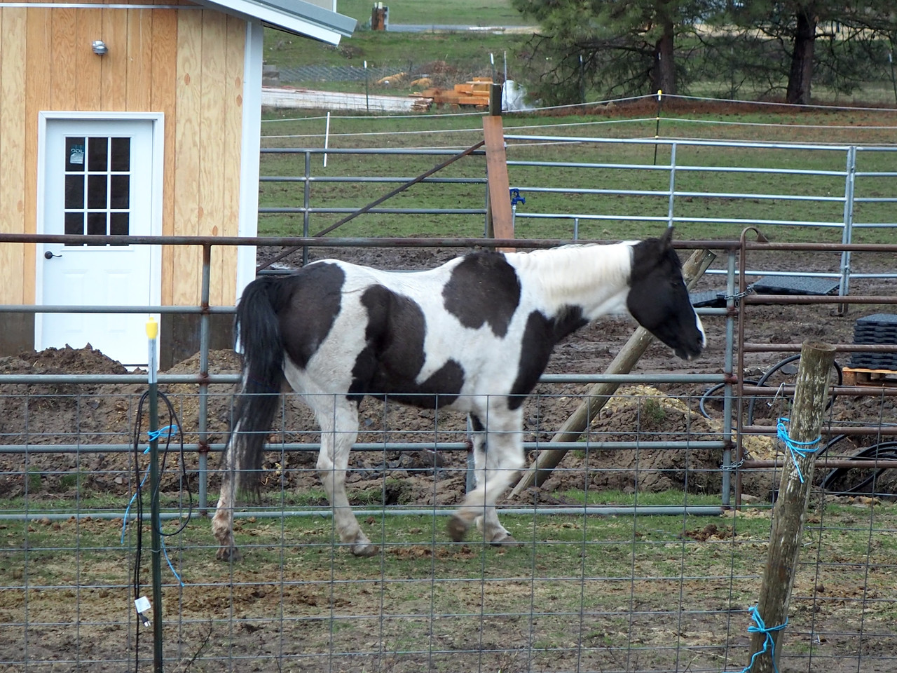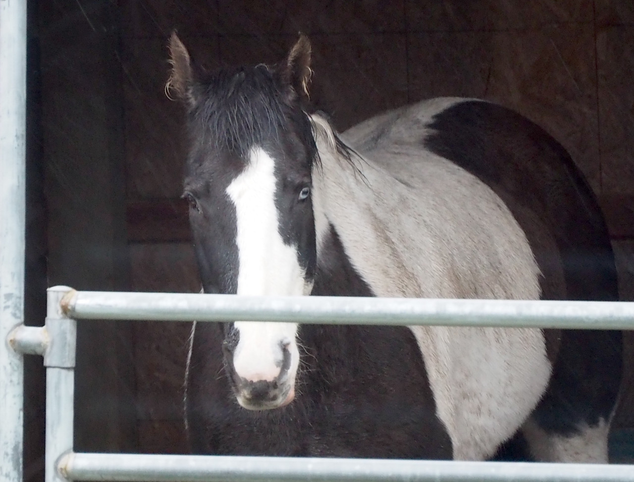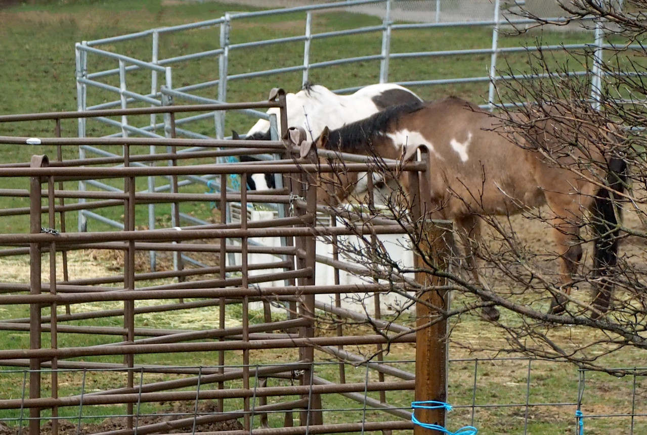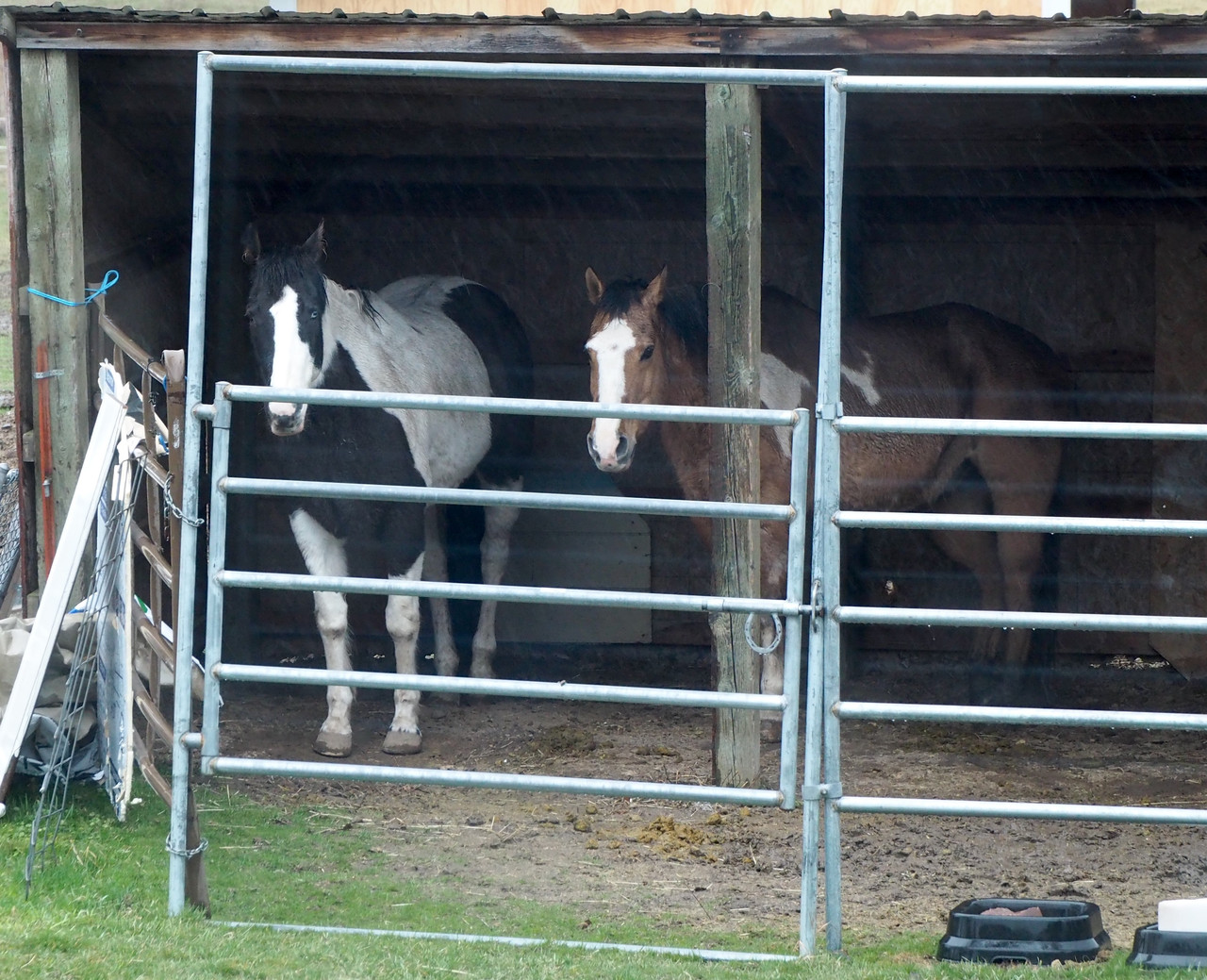 Another day was rainy. Horsies stood inside their still-temporary "barn".