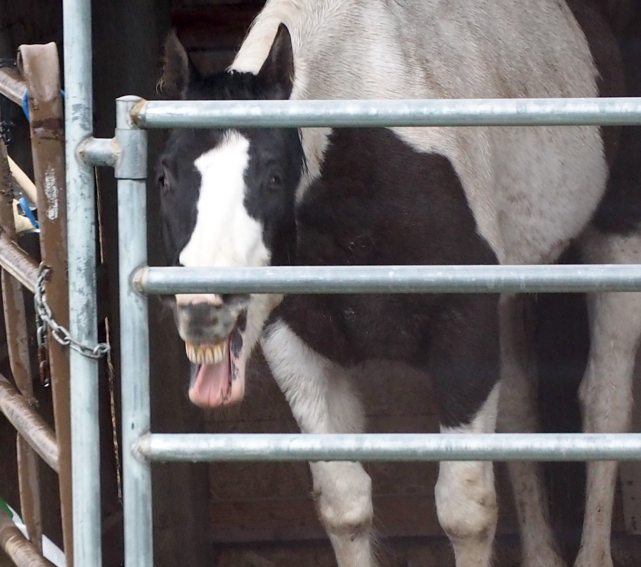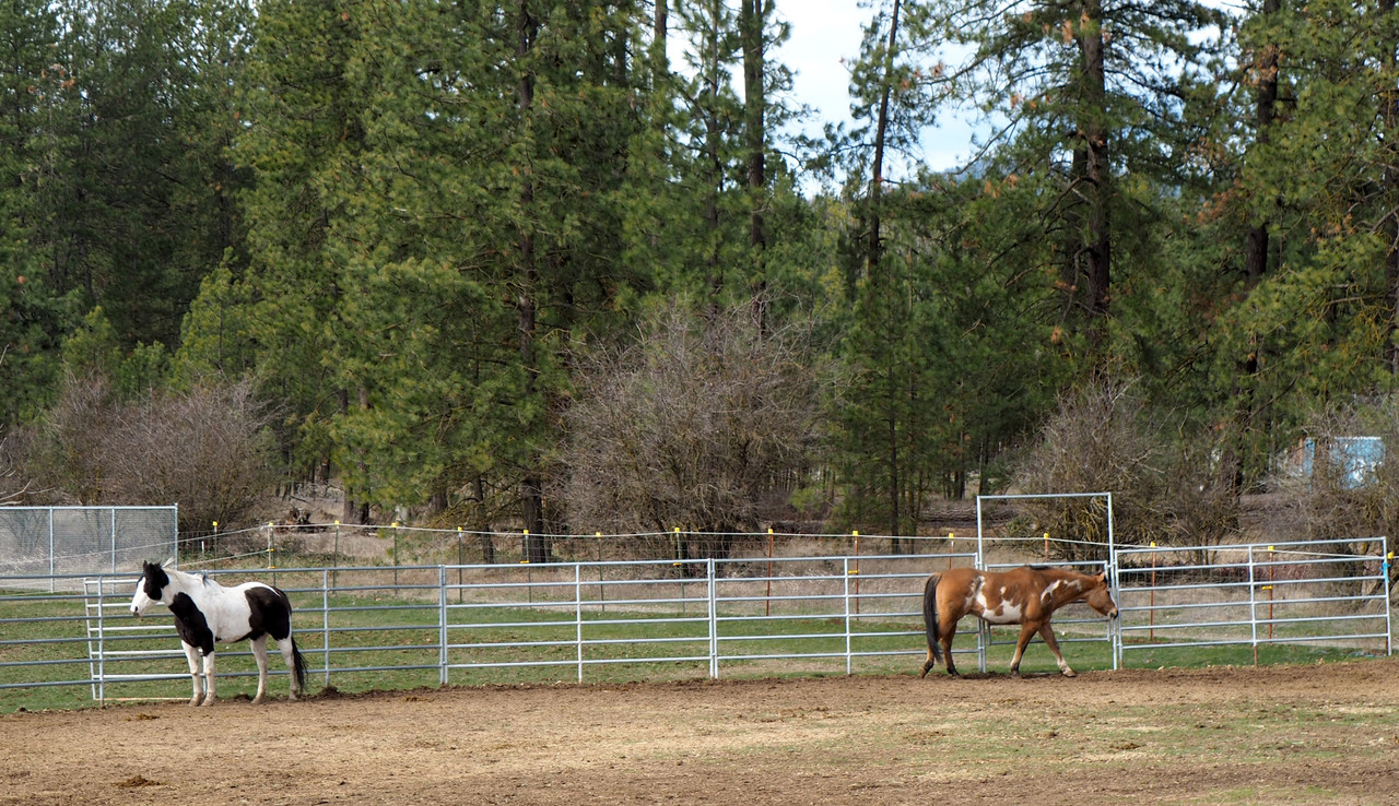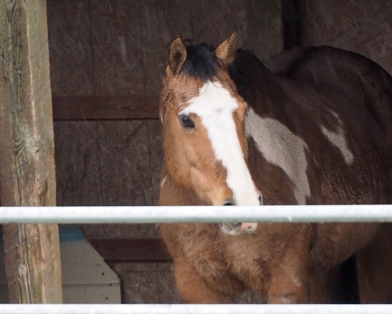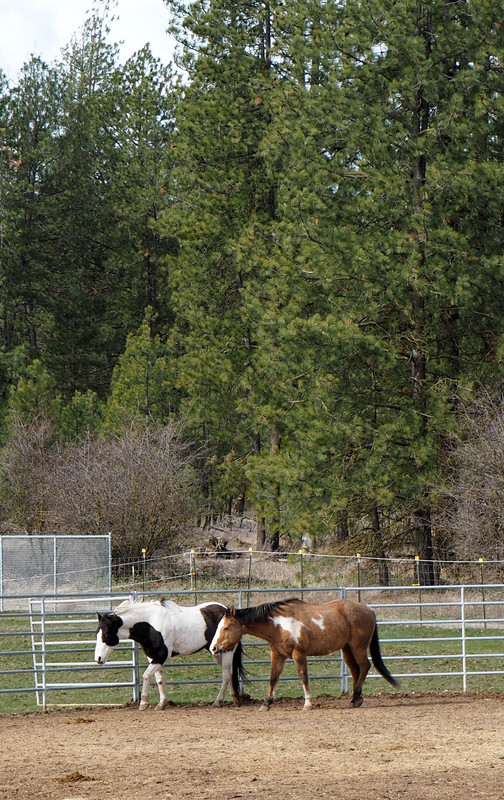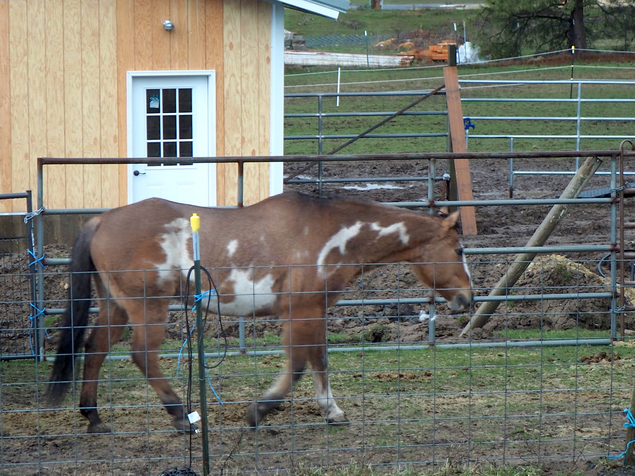 Another day was rainy. Horsies stood inside their still-temporary "barn".