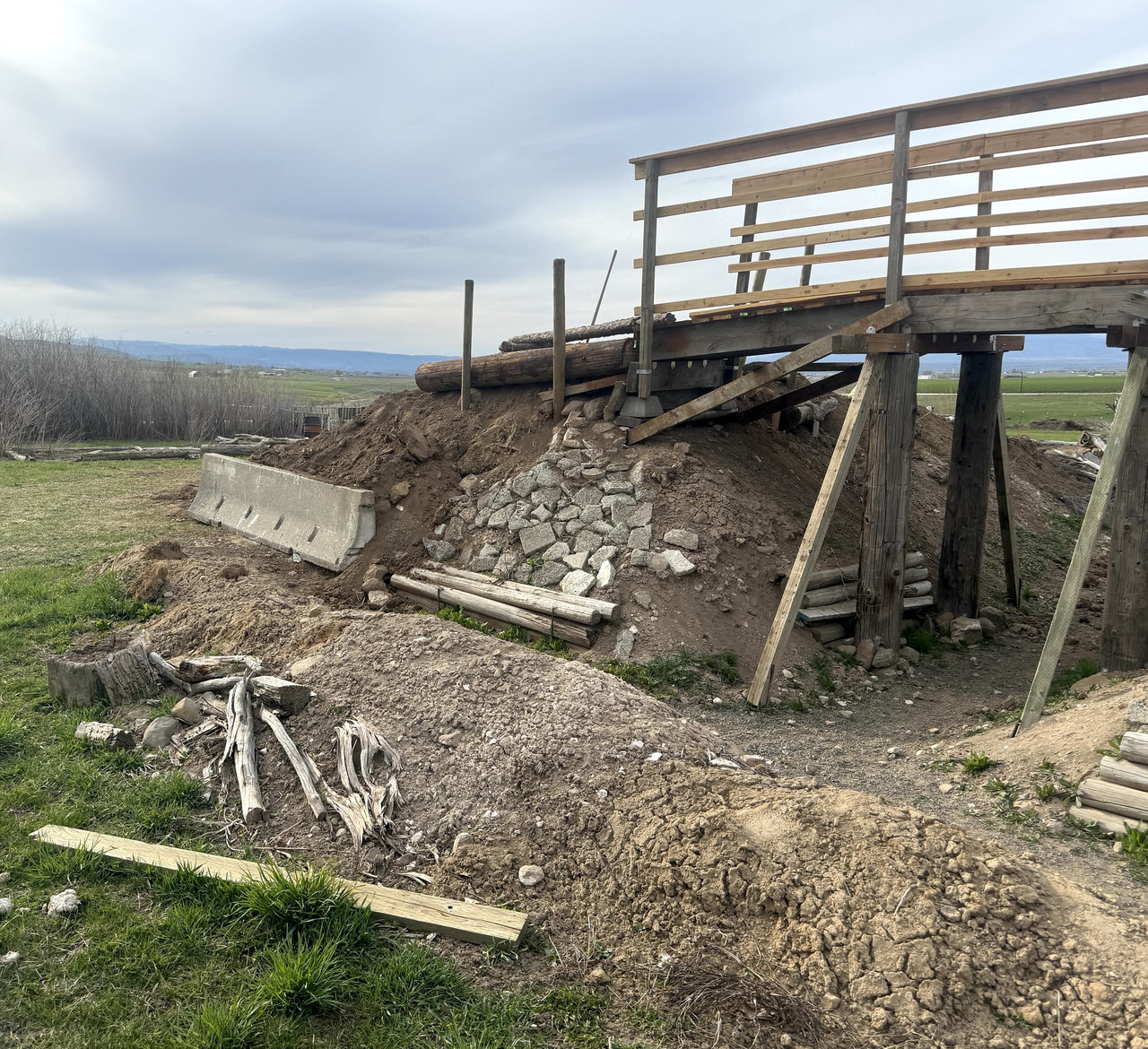Jersey Barriers held dirt and rocks in place.