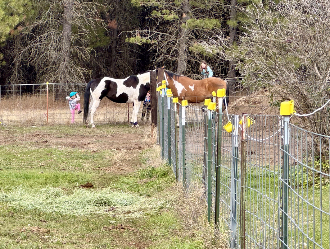 The neighbor girls came over to talk with the horses yesterday.