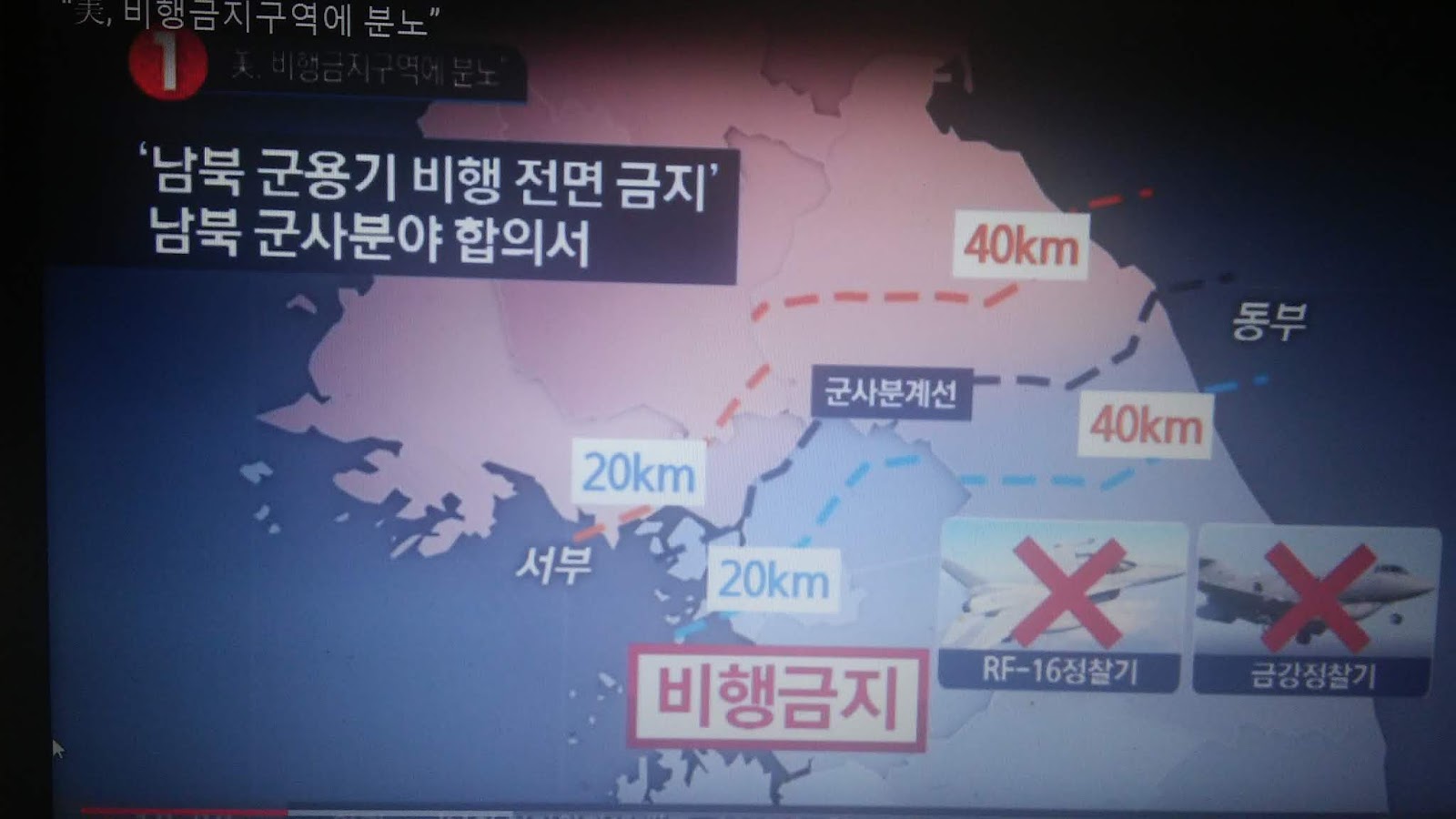 Channel A News Top Ten posted a video on youtube concerning the controversy on October 12. The essence of the matter is that the US complained that it was not given enough time to digest the lengthy military agreement reached by the two sides. The South Korean Defense Ministry has said that the US/UNC military command was consulted many times in the course of the military negotiations with the North, but the US side says the consultation was insufficient, and that last minute details in the agreement were not delivered to the US/UNC side until September 16, clearly an inadequate time to consider such a lengthy agreement agreed to by North and South on September 18. The principle points of contention are related to the restrictions on military air operations in the vicinity of the DMZ. Although there are some other differences out there, this report is limited to the air operations issue.