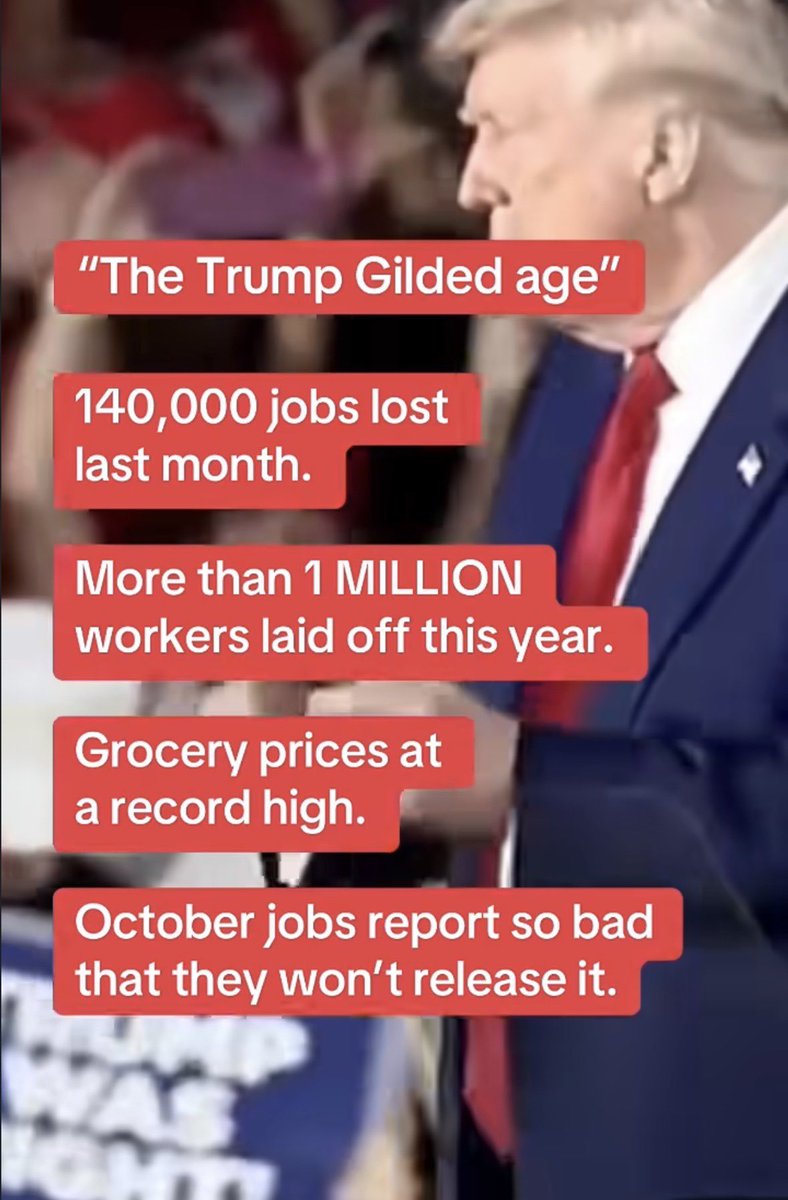 There was Zero data collection done in October for the jobs report and unemployment rate because the GOVERNMENT WAS SHUT DOWN THE ENTIRE MONTH! How the FUCK are they supposed to come up with numbers with zero input data? (Or would this guy prefer they just MAKE UP numbers?) To spread this as a conspiracy theory that they're hiding the data because it's so bad is beyond pathetic. People who spread these type of conspiracy theories are just as dangerous as the Trumpsters on the right. In reality, October data WILL BE RELEASED when November is released (so how the hell does that equate to them hiding it??).