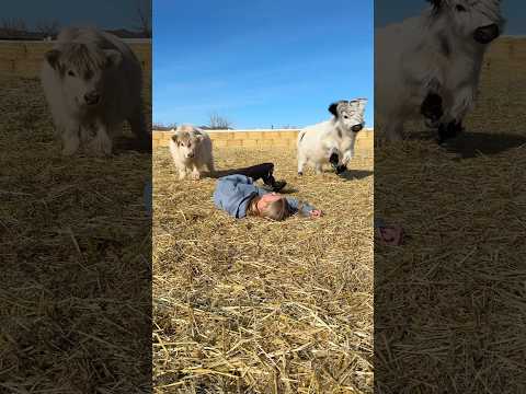 Pretending to faint in front of her cows!